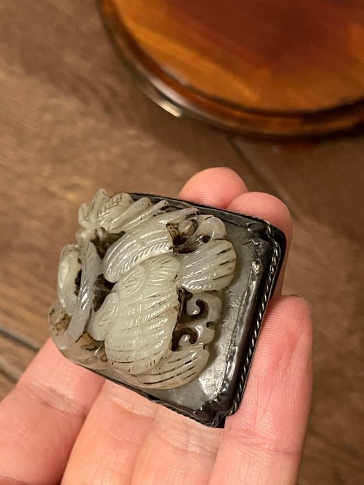 Zeldzame riemgesp - 19e-20e eeuw - Jade, Verguld zilver - China