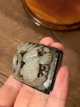 Zeer zeldzame en mooie Chinese verguld zilveren riemgesp met gesneden jade erop! Er is een teken aan de achterkant van de riemgesp! De standaard is niet inbegrepen!