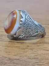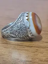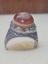 Prachtige handgemaakte antieke zilveren ring met Soleimani Agaat uit de Pahlavi periode van Iran. 1950-1970.