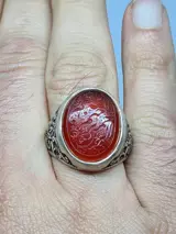 Prachtige antieke handgemaakte sterling zilveren ring uit het Ottomaanse tijdperk met ingewikkelde details en een prachtige centrale carneool agaat in goede staat. De ringmaat is 10/23/63 met een totaal gewicht van 11 gram.