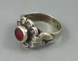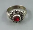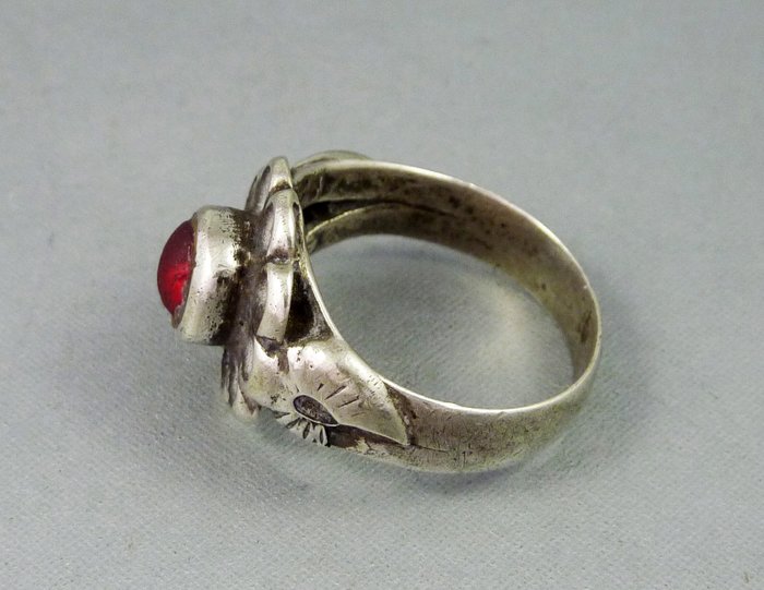 2- Oude zilveren Rajasthan ring, India, gemaakt van zilver en glas.