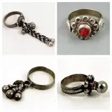 1- Oude etnische traditionele Rajasthani ring, gemaakt van zilver. Er zitten kleine hangers aan die een leuk geluid maken bij het bewegen.