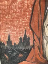 Na enig zoekwerk vond ik de reproductie ervan op een affiche uit 1930 van socialistisch dagblad ‘de Vooruit’ in Gent. Het is een aankondiging van de publicatie in feuilletonvorm van de sociaal-realistische roman’ de Moeder’ uit 1907, van de Russische schrijver Maxim Gorki, die door dit boek wereldberoemd werd.