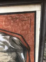 Unieke krijttekening op schilderskarton van 63x77 cm door Rob Colier.