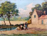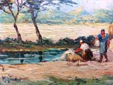 Oude groot formaat olieverf op paneel schilderij, met de hand gesigneerd door Roberto Giovani.