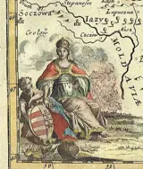 Johann Bruggen: Podolia et Bessarabië. Kopergegraveerde kaart met eigentijdse omtrekkleuring en gekleurd cartouche. Ca. 1:2.200.000. Wenen: [1737].