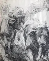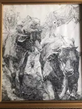 grazende koeien originele pentekening gesigneerd door Rudolf Blum 1946