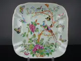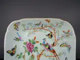 Zeer fraai chinees porselein Celadon/familie rose schaal met Vogels/bloemendecor uit 19e eeuw.
