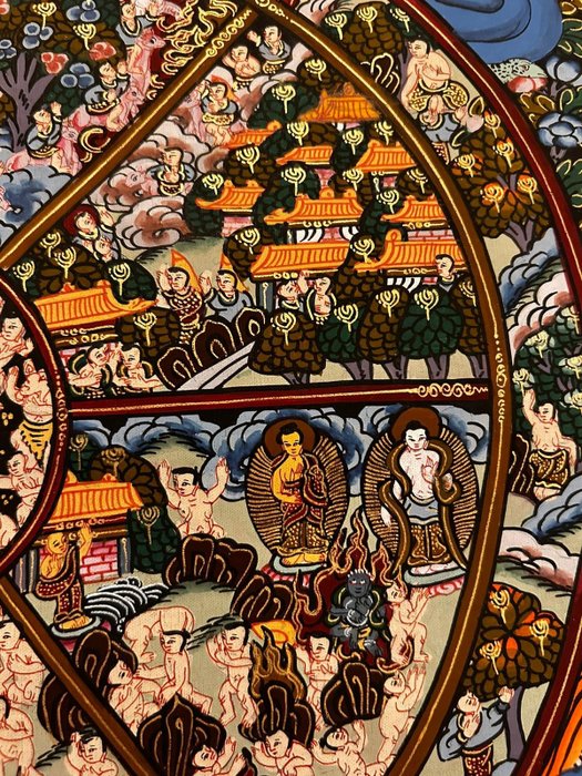 Schilderij (1) - Katoen - Wheel of lifeThanka Painting - Nepal - Tweede helft 20e eeuw