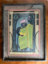 Oude afbeelding van Viṣṇu in de vorm van Śrī Nāthaji (gedeeltelijk gebroken glas)
