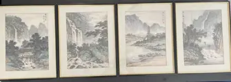 4 schilderijen op papier gesigneerd yuan songnian