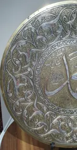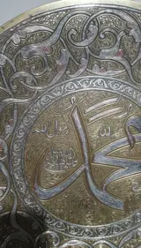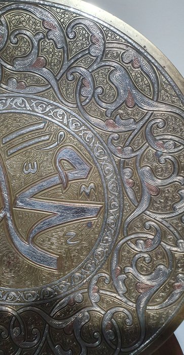 Oriental dish, 44 cm, damascened met zilver, koper, messing, Egypte, Syrië, 19e eeuw"