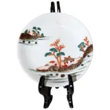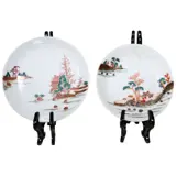 Twee prachtige kleine Chinese schoteltjes, gedecoreerd in rood, groen en goud.