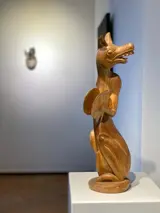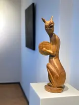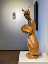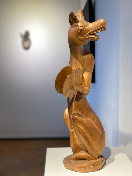 Zeer bijzonder en uniek oud kangoeroe beeldje met cimbaal in de hand. Gemaakt van massief en hard krokodillenhout.