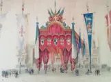 Europese school aquarel en tempera schilderij toe te schrijven aan de Oostenrijkse kunstenaar Gurk Eduard schilder na de reis van Ferdinand I van Oostenrijk in Italië voor zijn kroning in 1838 die plaatsvond in de kathedraal van Milaan.
