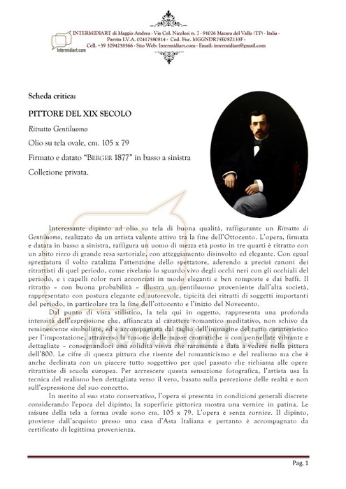 Interessant olieverfschilderij op canvas van goede kwaliteit, voorstellende een portret van een heer, gemaakt door een getalenteerde kunstenaar die eind 19e eeuw actief was. Het werk, linksonder gesigneerd en gedateerd, toont een man van middelbare leeftijd gezien in driekwartaanzicht met een rijkelijk getailleerd pak, met een nonchalante en elegante houding. Met evenveel minachting katalyseert het gezicht de aandacht van de kijker, volgens de precieze canons van de portrettisten van die periode, zoals blijkt uit de levendige blik van de zwarte ogen met de bril van die periode, en het zwarte haar gestileerd in een elegante en goed- samengestelde manier en door de snor. Het portret illustreert - naar alle waarschijnlijkheid - een heer uit de high society, afgebeeld met een elegante en gezaghebbende houding, typerend voor portretten van belangrijke onderwerpen uit die periode, met name tussen het einde van de negentiende eeuw en het begin van de twintigste eeuw.
