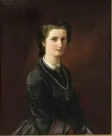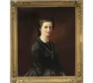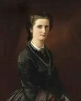 Het schilderij, gedateerd in het jaar 1865, is een groot portret van een jonge vrouw in een zwart kostuum, olieverf op doek, gesigneerd en gedateerd linksonder ''L. Bahnstede 1865''
