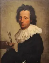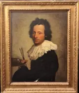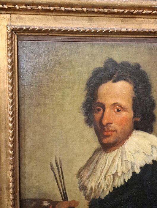 Olieverf op doek met het portret van Salvator Rosa, Italiaanse school uit de 18e eeuw.