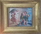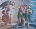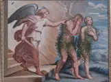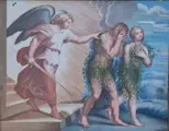 Tempera op papier met de verdrijving van Adam en Eva uit het paradijs door de neoklassieke kunstenaar XVIII-XIX eeuw.