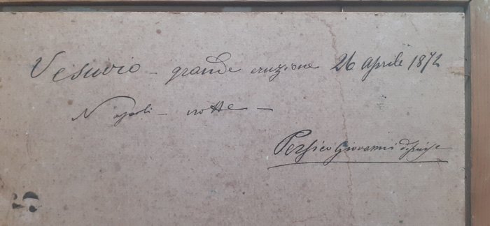 Prachtig schilderij dat de uitbarsting van de Vesuvius op 26 april 1872 voorstelt