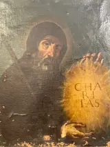 Olieverfschilderij op canvas opnieuw bekleed in de oudheid met een zeldzaam beeld van San Francesco di Paolo door een Napolitaanse meester uit het einde van de 17e eeuw van 60 80 met lijst 62 75