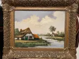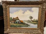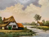 Scuola Olandese del XX secolo raffigurante un paesaggio fluviale con cascina