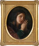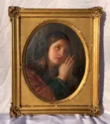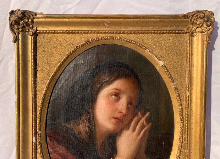 Olieverf op doek, in een bewerkte en vergulde houten lijst.