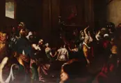 Stilistische en compositorische overeenkomsten zijn te vinden met de Rape of the Sabine Women verkocht door Pananti Casa d'Aste Gallery (olie op canvas 146,5 x 252,5 cm, lot 153, Florence, 2021); Triomf van David verkocht door Pandolfini Casa d'Aste (olie op canvas 116 x 173 cm, lot 34, Florence, 2018); de kroning van Bacchus verkocht bij Sotheby's in New York op 30 januari 2016; met Salomo en de koningin van Sheba uit een privécollectie en met Het wonder van San Nicola di Bari in de kerk van Suffragio in San Casciano Val di Pesa. De strengste vergelijkingen hebben betrekking op de ronding van de gezichten, de botte en vloeiende penseelstreken die typerend zijn voor de schilder en de landschappelijke setting, geagiteerd en vol beweging: allemaal elementen die ook al aanwezig zijn in het schilderij van Livio Mehus waaruit Dandini inspiratie put.