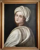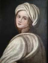 Sfeervol portret van Beatrice Cenci, gemodelleerd door Guido Reni. Olieverf op doek, 18e eeuw.