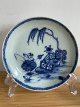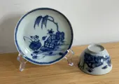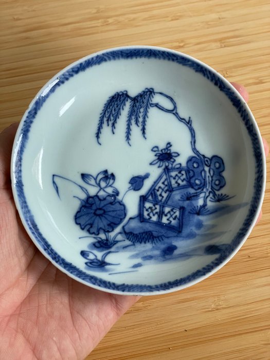 Op de foto's ziet u een set blauw wit schotel & kop. Minimale gebruikssporen & haarlijn op in het kopje.