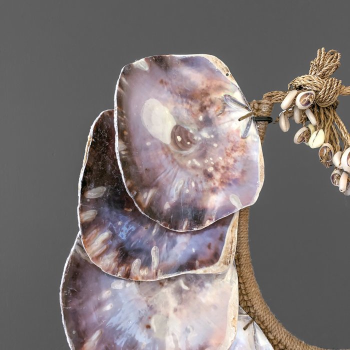 Collier van schelpen op standaard uit Papoea-Nieuw-Guinea.