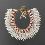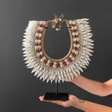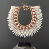 Collier van schelpen op standaard uit Papoea-Nieuw-Guinea.