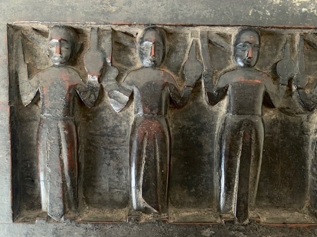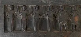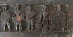 Het paneel (voorstelling: in hoog reliëf 8 staande mannen en vrouwen met o.,a. muziekinstrumenten, één figuur achter een grote kist, en in laag reliëf een koe en een menselijk hoofd en profile) is onderdeel van een huwelijkspalankijn (= palki/rahi). De Santhal vormen een grote Adivasi (tribale) groep die voornamelijk woonachtig is in de deelstaat Jharkhand maar ook in belendend Bihar, West-Bengalen en Odishas.