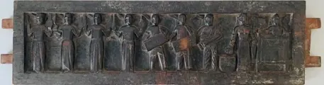 Paneel van bruidspalankijn - teakhout - Noord-India (Jharkhand) - Santhal bevolking - begin 20e eeuw