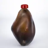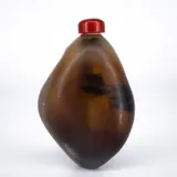 Zeldzame Chinese snuiffles van agaatglas in de vorm van een Chinese kiezelsteen. Heeft wat ouderdomsslijtage en verschillende kleine deukjes zoals op de foto's te zien is.