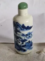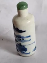 Mooie fles zeeduivel of snuiftabak in Chinees porselein. Jade stop. Verpakking op maat.