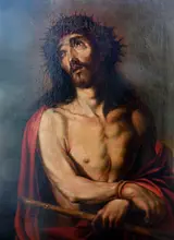 De Ecce homo vormt een zeer goed gecomponeerde en belichaamde getuigenis van deze beroemde episode van de Passie van Christus, zo algemeen vertegenwoordigd in heel Europa van de vijftiende eeuw tot het midden van de negentiende eeuw.