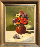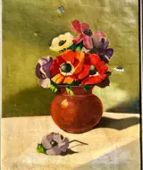 Europese school van de 20e eeuw. Olieverf op doek dat een vaas voorstelt.