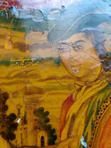 Conditie : Originele staat, ontbrekende kleine delen van schilderij, ontbrekende spiegel