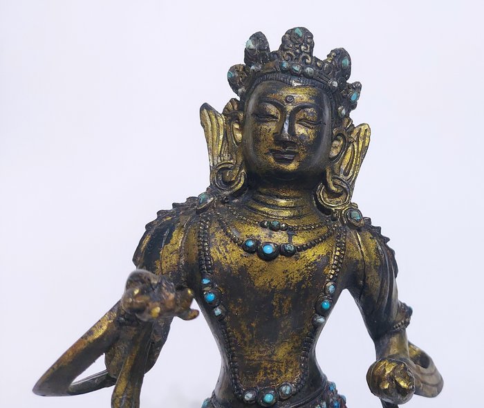 Dit is een prachtige, ingewikkeld gemodelleerde, verguld bronzen en turquoise, Vajrasattva