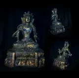 Hoewel identiek aan de Tibetaans/Himalaya-stijl van stukken uit de jaren 1300-1800 en met goede modellering, dateer ik dit beeld uit het begin tot het midden van de 20e eeuw. Maak alstublieft uw eigen schatting.