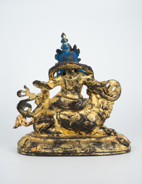 Het brons lijkt uit de 19e eeuw te komen, met beschildering en vergulding uit de 20e eeuw.