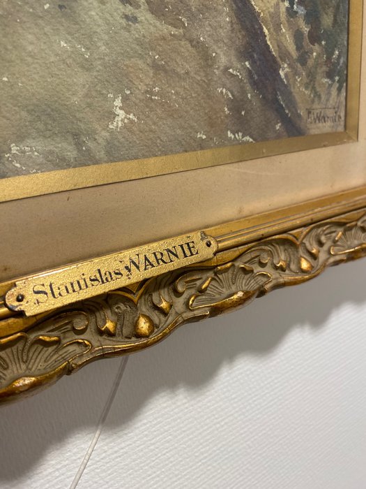 Aquarel van de Belgische schilder Stanislas Warnie (1879 - 1958, Brussel). Origineel werk in goede staat. In originele lijst in goede staat.