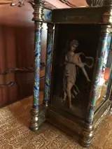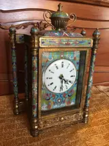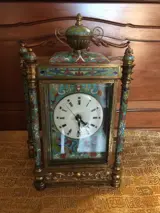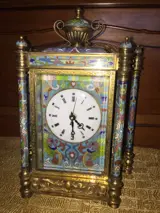 Erg zeldzaam! Chinese cloisonne pendule, verguld messing met fantastische en unieke handbeschilderde porseleinen zijpanelen van jongeren in westerse gewaden. Zeer mooie schilderijen.