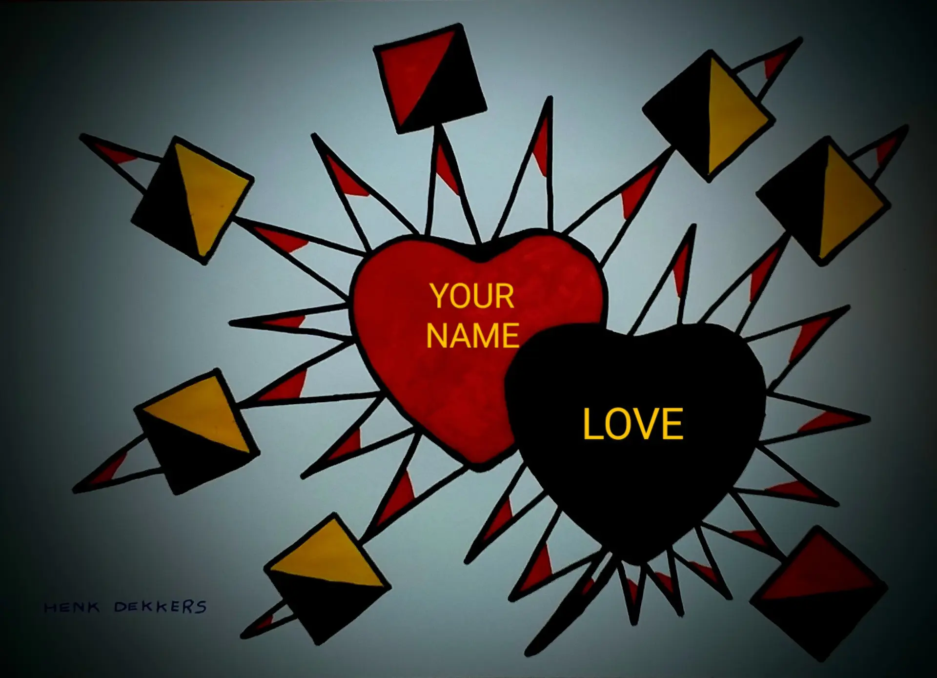 Koop een digitaal schilderij van Henk Dekkers met jouw naam of de naam van wie jij houd in het rode hart geschreven.
