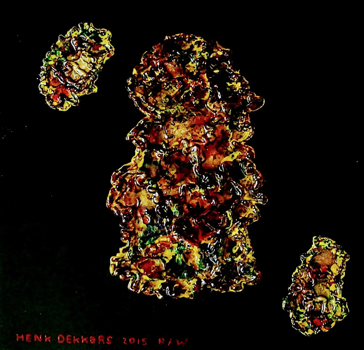 Gemaakt met olieverf en acrylcerf op een aparte manier met een speciale glanslaag.