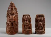 Drie stuks oude tempel priester beeldjes, datering jaren 40 tot midden 20e eeuw. Alle drie in mooie oude staat. Hoogte 14 en 23 cm.