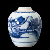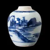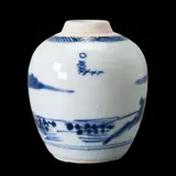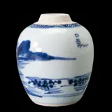 Theebusje (1) - Blauw en wit - Porselein - Visser in rivierlandschap met bergen - China - Kangxi (1662-1722)