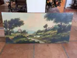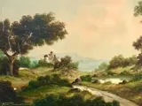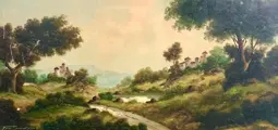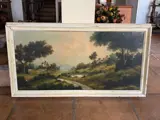 Olieverf op doek met afbeelding van een prachtig Italiaans landschap, werk van uitstekend vakmanschap met een antieke houten lijst.
