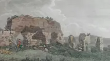 Ets en aquatint door Paul Sandby, naar een tekening van William Pars, met de ruïnes van Troas, een historische plaats in Turkije. Groot-Brittannië, 27 april 1779